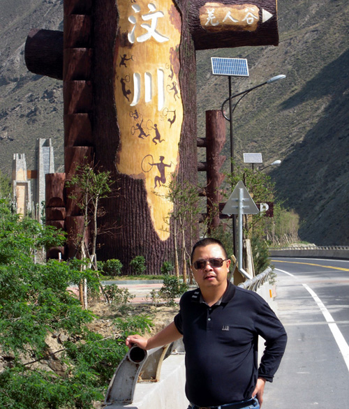 工作視查完,孫總在汶川地震中心悼念在512地震中遇難的同胞,并留影紀念 |