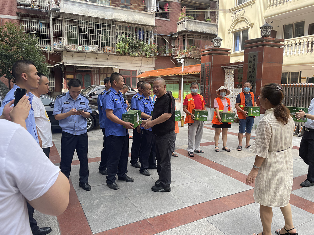 6月30日下午,在東南街道辦劉書記和工會何主席的帶領下,為街道辦事處、城管人員、環(huán)衛(wèi)工人們送上了防暑降溫慰問品,為他們送去了夏日的清涼。