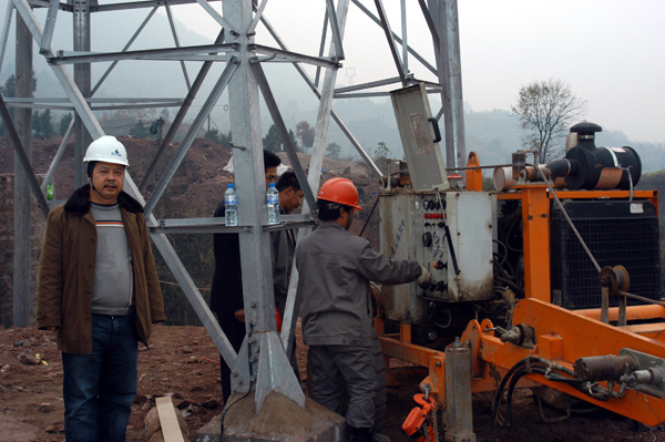 接到工程生產任務后,我公司立即按照工程的要求建立了完善的管理組織機構,并成立了通(川北)—普(光)220kV送電線路新建工程項目部。依照管理組織機構圖進行了具體分工和人員的落實。根據現場的情況,配備了各種檢測設備,進行了跟蹤檢查。認真履行公司賦予的監督、指導職責,全方位、全過程的對通(川北)—普(光)220kV送電線路新建工程進行了質量、安全、進度、工程協調等方面的控制。在施工過程中,加強安全管理控制,嚴格審核施工組織措施、安全措施和技術措施,把防止人身傷亡事故作為安全工作的重點,牢固樹立“安全第一,預防為主”的方針,認真分析本次工程危險點,并提出相應防范措施,切實落實各項安全責任,督促檢查施工班組制訂防止高空墜落和觸電的安全措施,并監督實施。2009年3月8日,四川省質檢中心專家組一行,對工程基礎部分、組塔、放線工作、設備運行等情況進行了詳細詢問與嚴格檢驗,并與工程項目經理、技術負責人進行了交流與探討,得到部門領導的一致稱贊,工程總體質量評為優良。